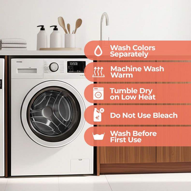 • Easy Care: Machine wash cold and tumble dry on low heat. Do not use bleach